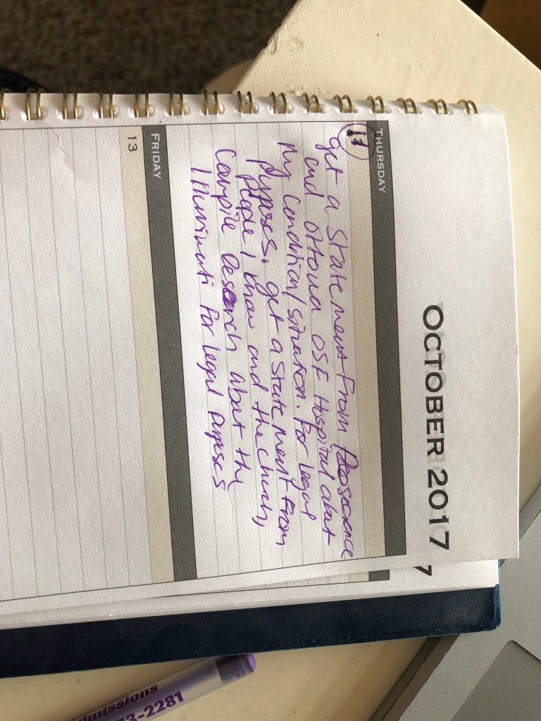 I told my family about my situation and they admitted me into Rosecrance Mulberry Center. Consequently, Rosecrance thought my situation to be urgent enough to transfer me to OSF Health Care St. Elizabeth Medical Center.